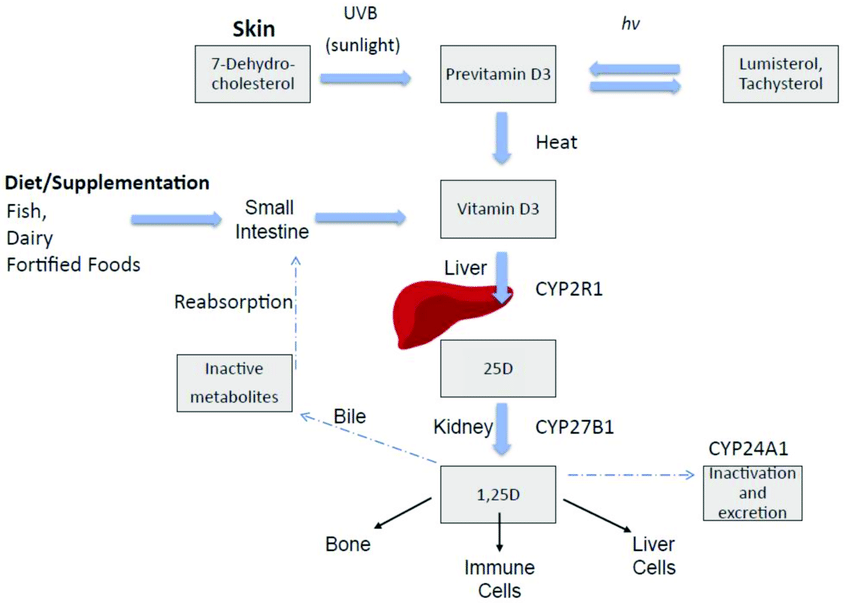 The amount of vitamin D your skin makes depends on many factors, including the time of day, season, latitude and your skin pigmentation. Depending on where you live and your lifestyle, vitamin D production might decrease or be completely absent during the winter months. Sunscreen, while important to prevent skin cancer, also can decrease vitamin D production.